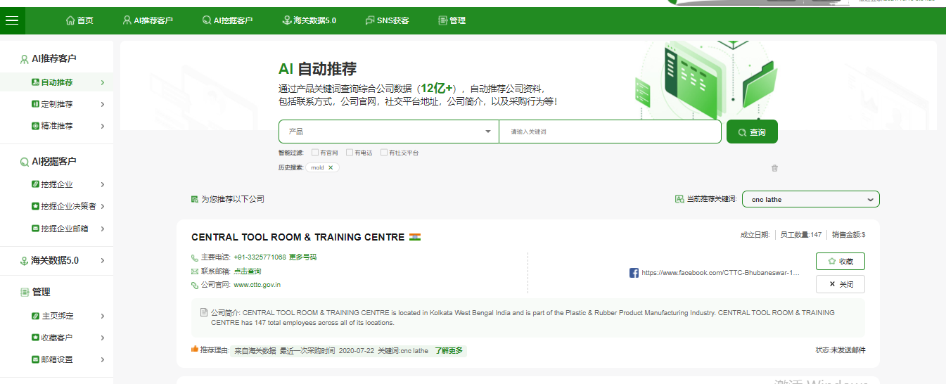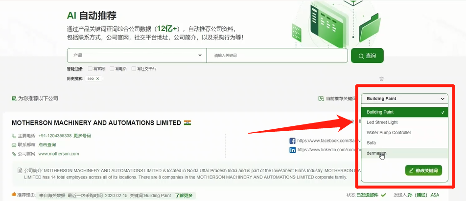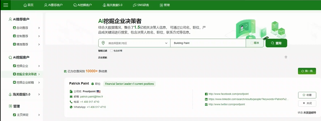 2、可以幫助外貿銷(xiāo)售人員調整獲客模式,除被動(dòng)等詢(xún)盤(pán)回郵件以外主動(dòng)搜尋意向客戶(hù),豐富自己的潛在客戶(hù)儲備庫,實(shí)現意向客戶(hù)積累。