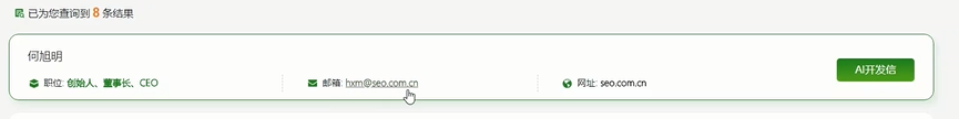 (2)搜索結果信息豐富,支持深挖郵箱:網(wǎng)站標題、描述、網(wǎng)址、公司全稱(chēng)、聯(lián)系電話(huà)、公司地址、SNS信息