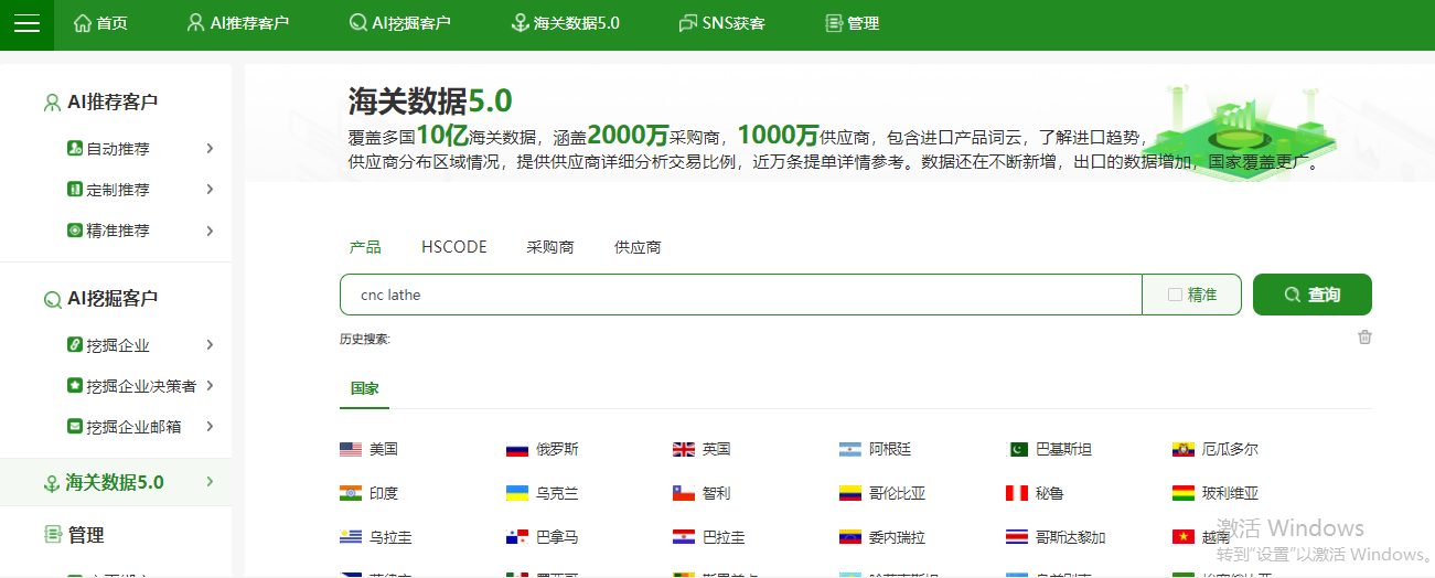 支持多種方式查詢(xún):包括國家、產(chǎn)品、HSCODE、采購商、供應商